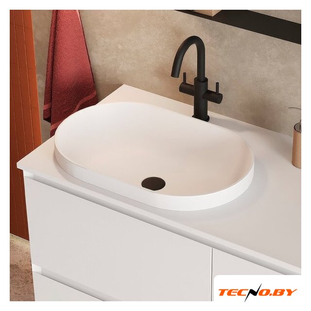 50x40 см, с одной чашей, накладной, керамика, крепление на мебельный шкаф