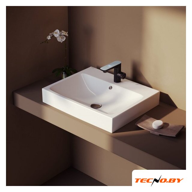 30x30 см, с одной чашей, накладной, фарфор, крепление на столешницу