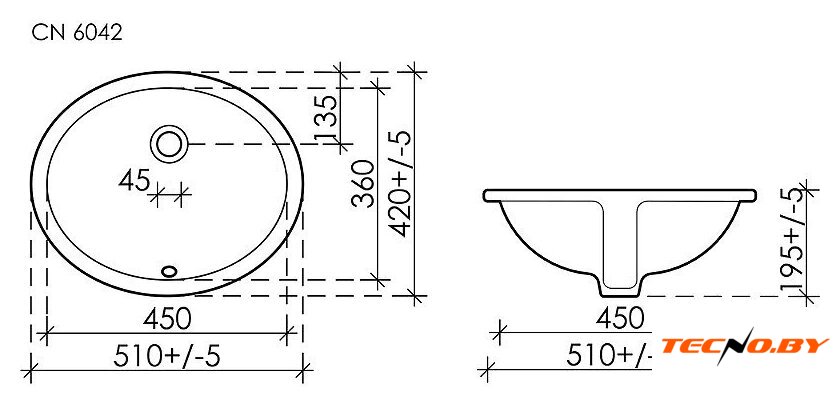 60x31 см, с одной чашей, накладной, санитарная керамика, крепление на мебельный шкаф/на столешницу