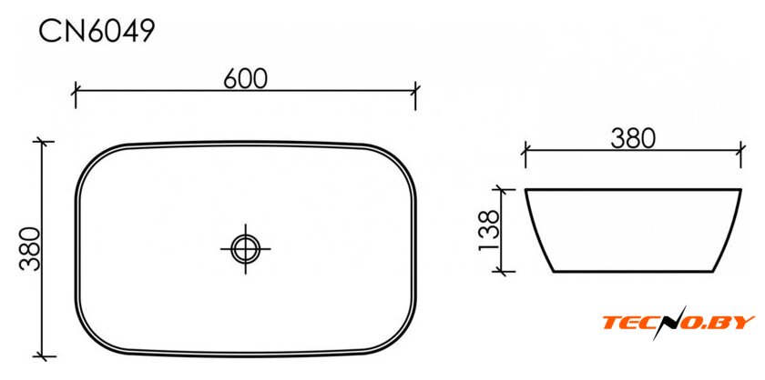 60x41 см, чаша, накладной, санитарная керамика, крепление на столешницу