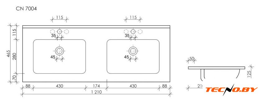 90x45 см, на две персоны (две чаши), накладной, санитарная керамика, крепление на столешницу