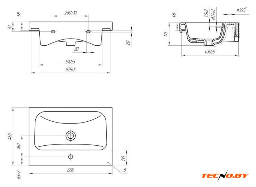 60.5x46 см, с одной чашей, накладной, санитарная керамика, крепление на столешницу