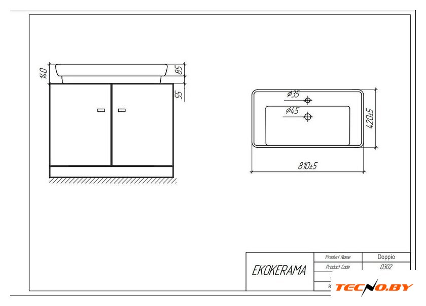 125.5x47 см, на две персоны (две чаши), накладной, санитарная керамика, крепление на мебельный шкаф