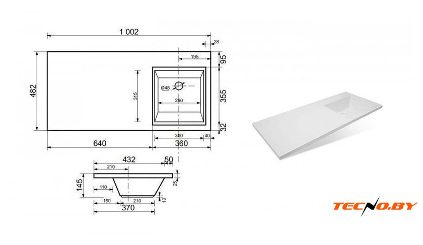 100.7x50.5 см, с одной чашей, накладной, искусственный мрамор, крепление на столешницу