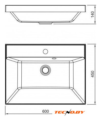 40x40 см, с одной чашей, накладной, фарфор, крепление на мебельный шкаф/на столешницу