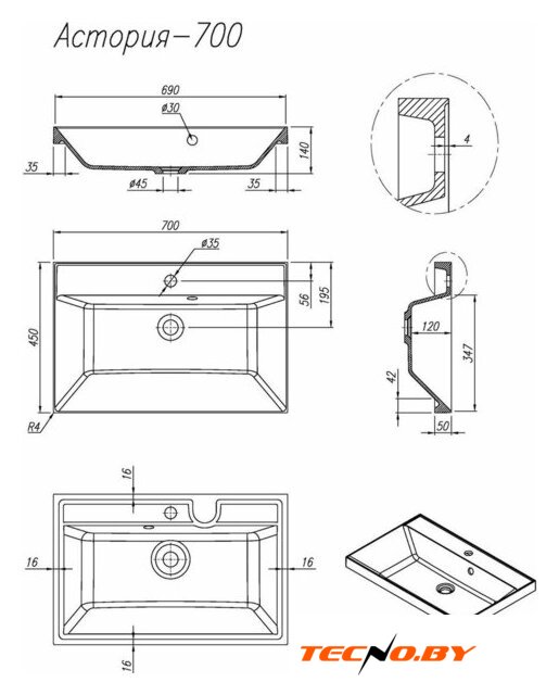 накладной, искусственный мрамор, крепление на мебельный шкаф