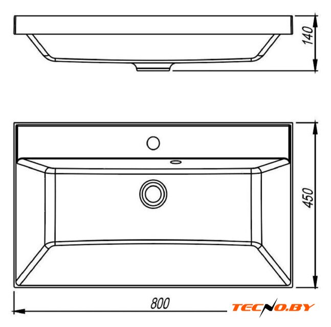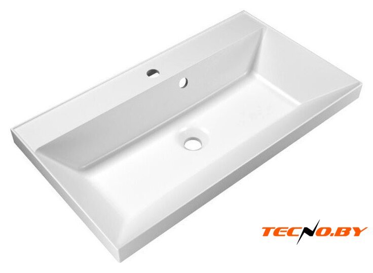 80x40 см, с одной чашей, накладной, фарфор, крепление на столешницу