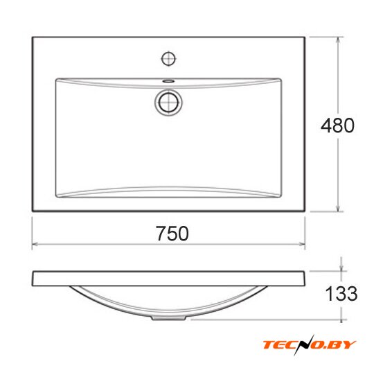 56.5x36.5 см, с одной чашей, накладной, санитарная керамика, крепление на столешницу