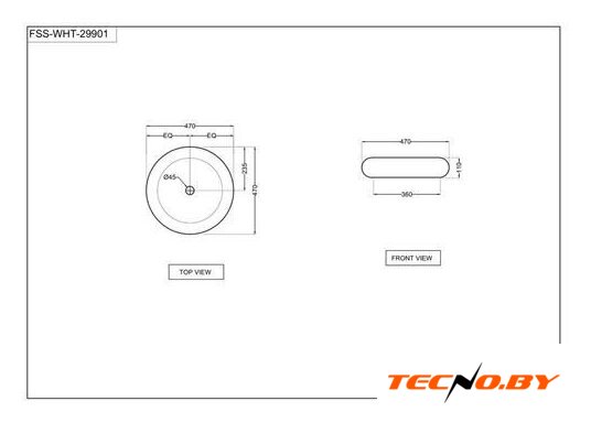 60x48 см, чаша, накладной, фарфор, крепление на столешницу