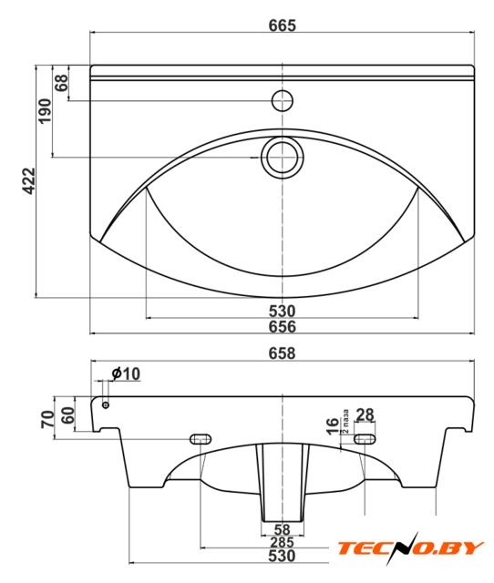 60.5x45.6 см, врезной, санитарная керамика, крепление на мебельный шкаф/на столешницу