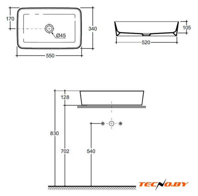 40x40 см, с одной чашей, чаша, санитарная керамика, крепление на столешницу