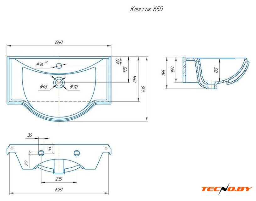 65x45 см, с одной чашей, настенный, санитарная керамика, крепление на стену/на мебельный шкаф