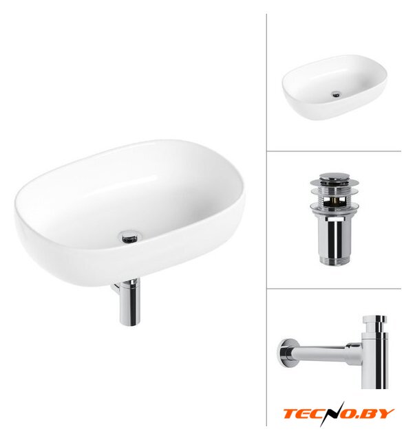 60x41 см, с одной чашей, накладной, фарфор, крепление на столешницу