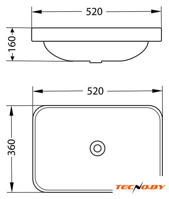 52x36 см, с одной чашей, накладной, фарфор, крепление на мебельный шкаф/на столешницу