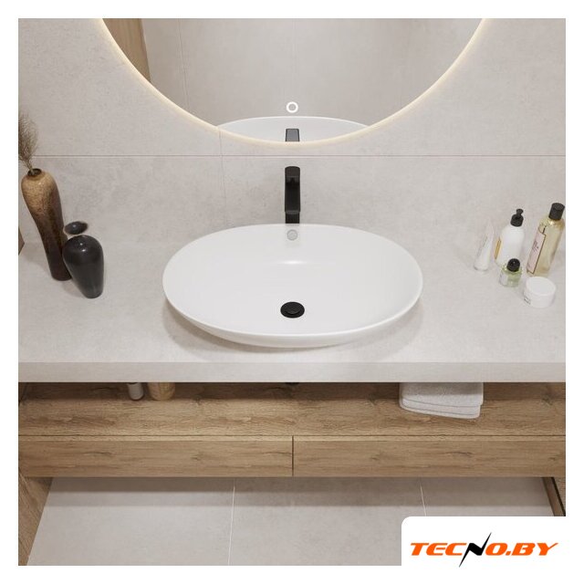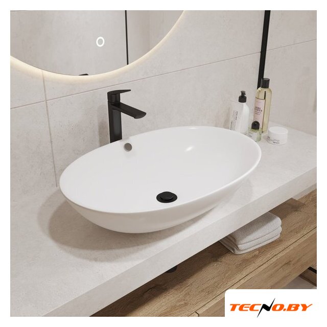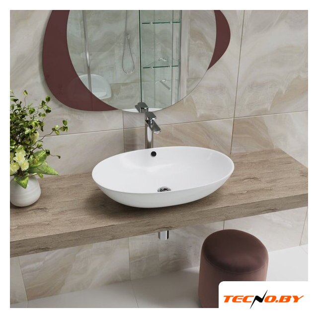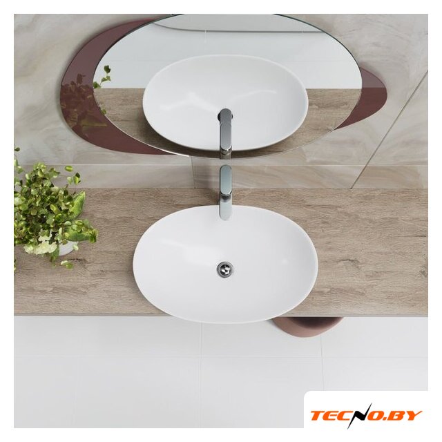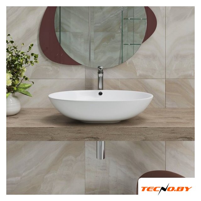 48x29.5 см, с одной чашей, накладной, фарфор, крепление на мебельный шкаф/на столешницу