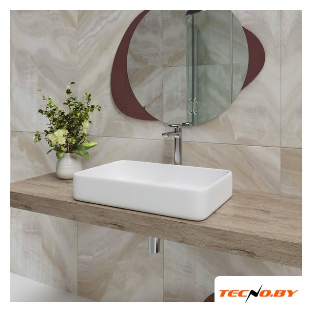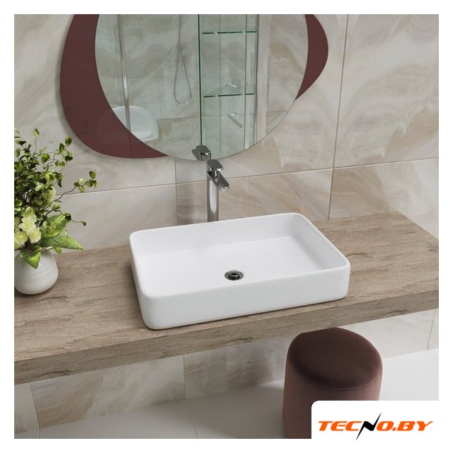 48x29.5 см, с одной чашей, накладной, фарфор, крепление на мебельный шкаф/на столешницу