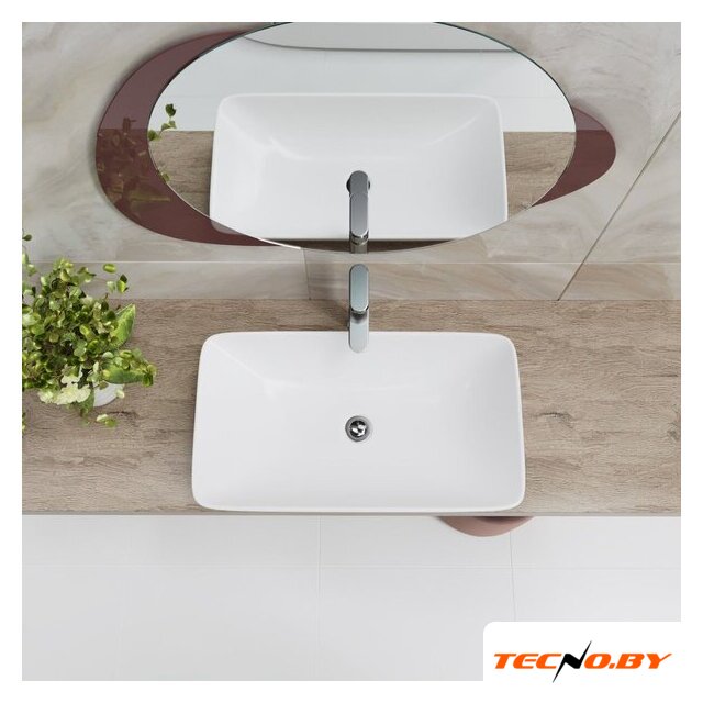 60x41 см, с одной чашей, накладной, фарфор, крепление на столешницу