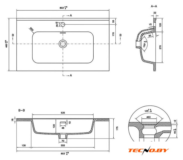 50x40 см, с одной чашей, накладной, керамика, крепление на мебельный шкаф