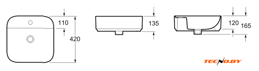 43x43 см, с одной чашей, накладной, санитарная керамика, крепление на столешницу