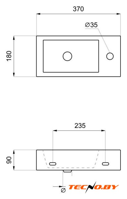 37x18 см, с одной чашей, накладной/настенный, фарфор, крепление на столешницу/на стену