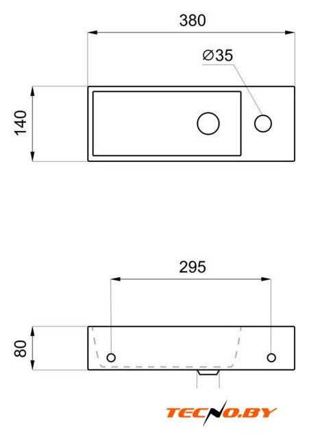 38x14 см, с одной чашей, накладной/настенный, фарфор, крепление на столешницу/на стену