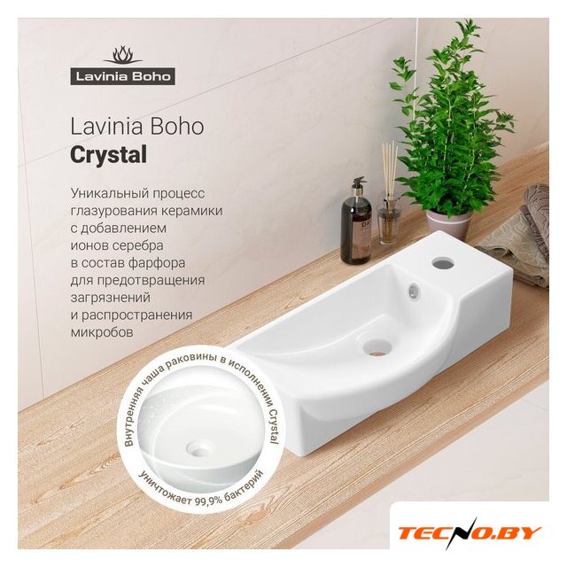 34x36 см, с одной чашей, накладной/настенный, фарфор, крепление на столешницу/на стену