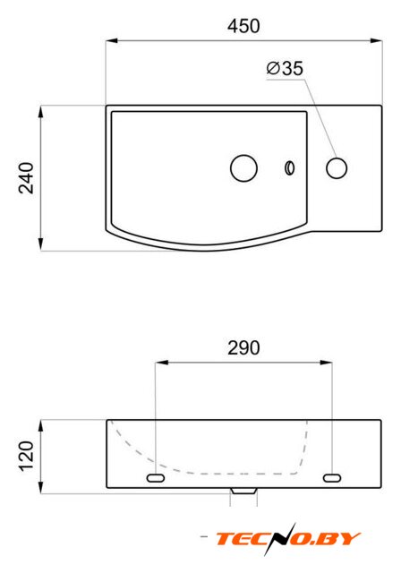35x36 см, с одной чашей, накладной/настенный, фарфор, крепление на столешницу/на стену