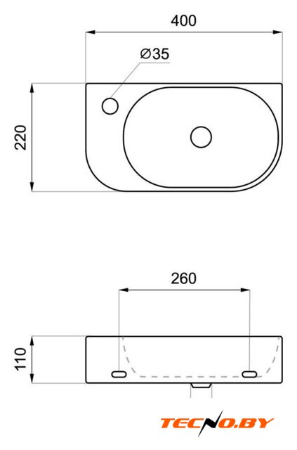 40x22 см, с одной чашей, накладной/настенный, фарфор, крепление на столешницу/на стену