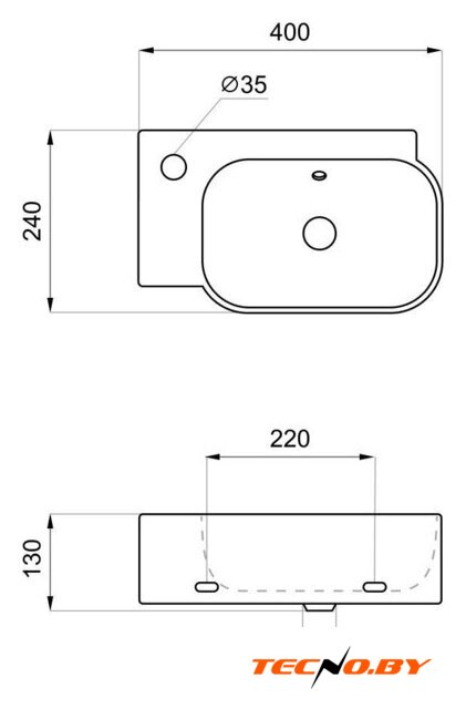 50x24 см, с одной чашей, накладной/настенный, фарфор, крепление на столешницу/на стену