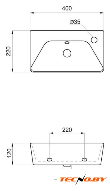 40x22 см, с одной чашей, накладной/настенный, фарфор, крепление на столешницу/на стену