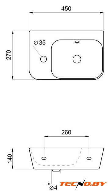 45x27 см, с одной чашей, накладной/настенный, фарфор, крепление на столешницу/на стену