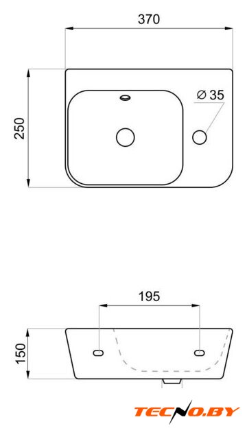 35x36 см, с одной чашей, накладной/настенный, фарфор, крепление на столешницу/на стену