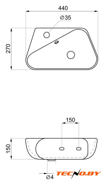 40x22 см, с одной чашей, накладной/настенный, фарфор, крепление на столешницу/на стену