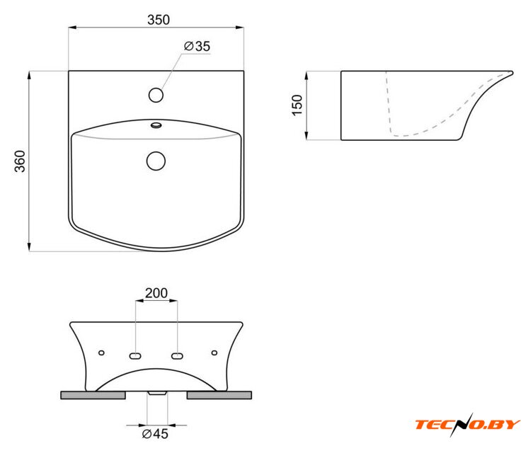 45x24 см, с одной чашей, накладной/настенный, фарфор, крепление на столешницу/на стену