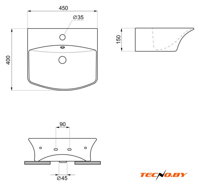 50x24 см, с одной чашей, накладной/настенный, фарфор, крепление на столешницу/на стену
