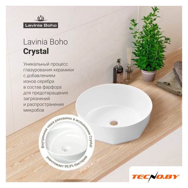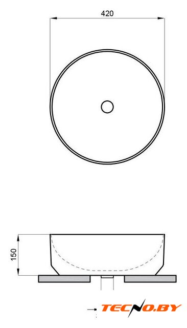 42x42 см, с одной чашей, накладной, фарфор, крепление на столешницу