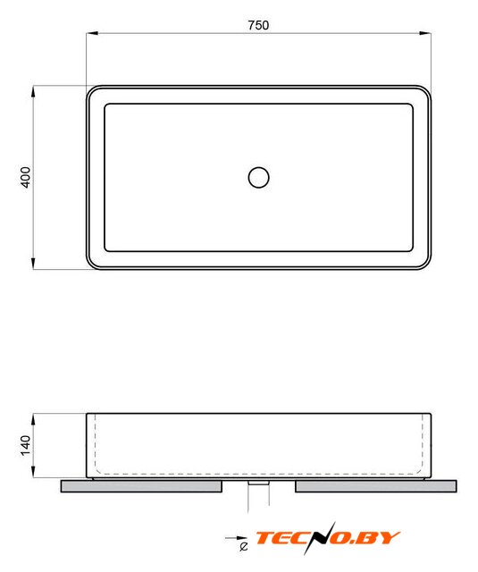 70.1x48.1 см, с одной чашей, накладной, искусственный камень, крепление на мебельный шкаф/на столешницу