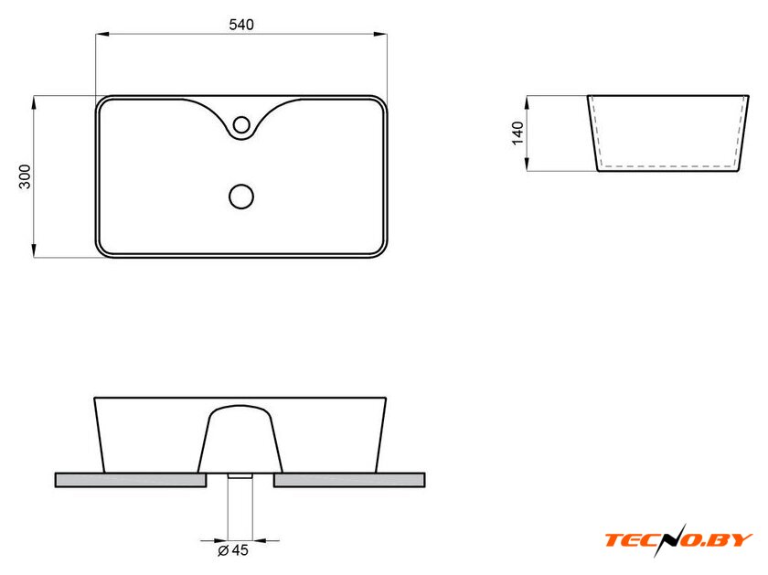 40x22 см, с одной чашей, накладной, санитарная керамика, крепление на столешницу/на стену