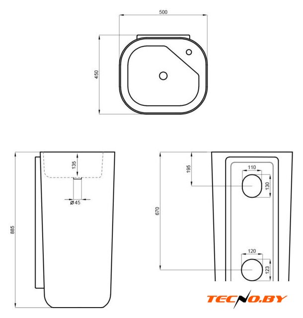 45x45 см, с одной чашей, настенный, фарфор, крепление на стену
