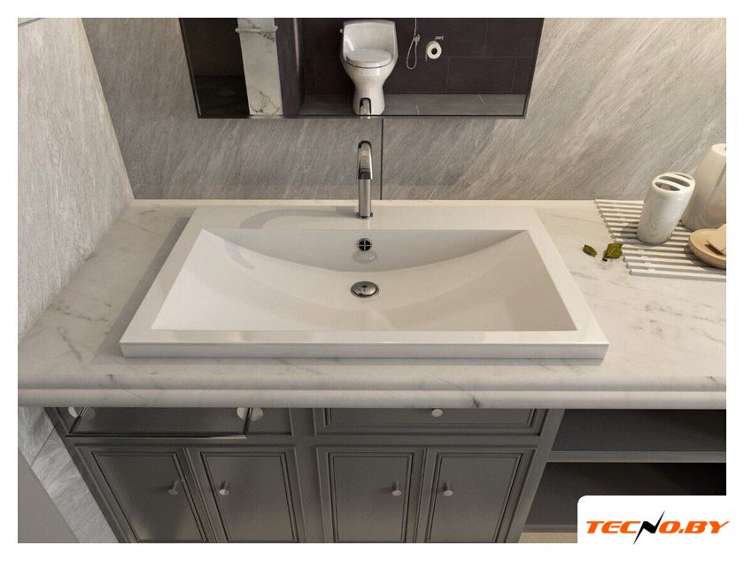 80.6x20.4 см, с одной чашей, накладной, искусственный мрамор, крепление на мебельный шкаф