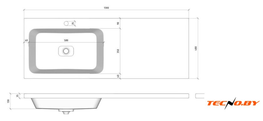 60x45 см, с одной чашей, врезной, искусственный мрамор, крепление на мебельный шкаф