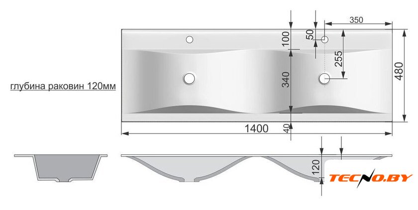 50x36 см, на две персоны (две чаши), накладной, санитарная керамика, крепление на столешницу