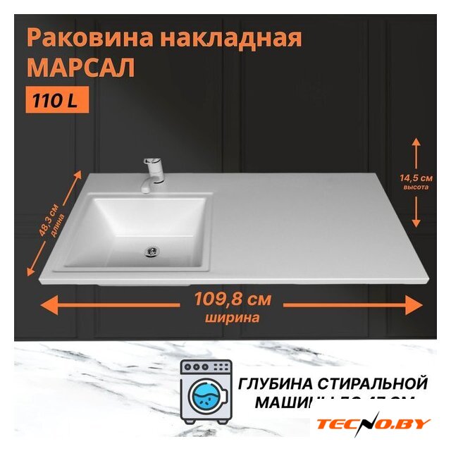 60x60 см, с одной чашей, настенный, искусственный мрамор, крепление над стиральной машиной