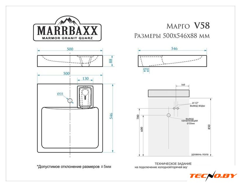 80x44.7 см, с одной чашей, врезной, искусственный мрамор, крепление на столешницу