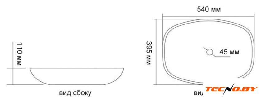 61x40.5 см, с одной чашей, накладной, фарфор, крепление на мебельный шкаф/на столешницу