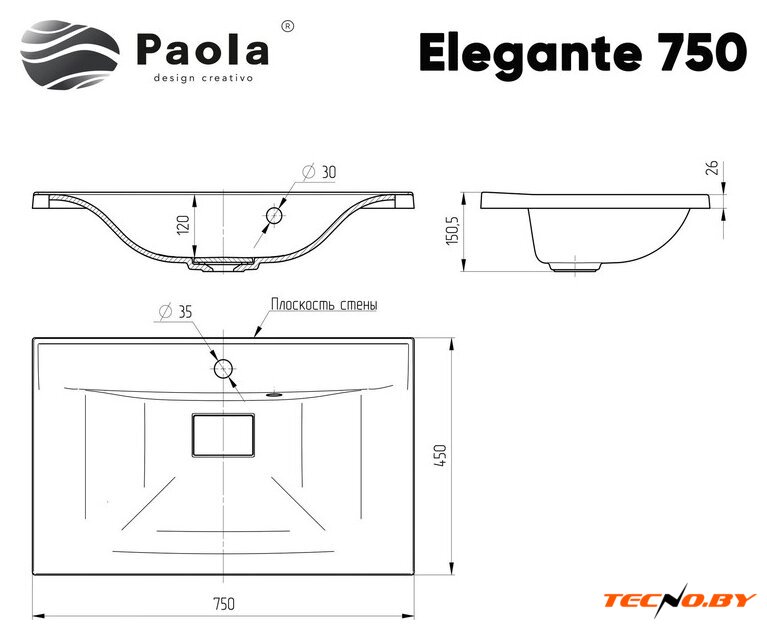 Paola Elegante 750 поставляется без смесителя и крепежных элементов, что предоставляет вам свободу выбора дополнительных аксессуаров по вашему вкусу. В комплекте идет необходимая сливная арматура, что упрощает процесс установки. Отсутствие полок, пьедестала и полупьедестала помогает сохранить минималистичный стиль вашей ванной комнаты.