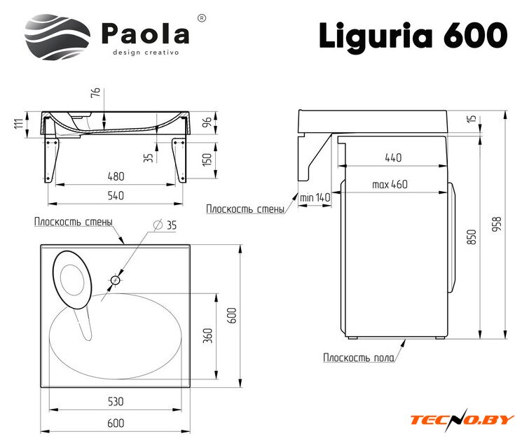 Paola Liguria 600 предназначен для накладной установки, что делает его монтаж простым и быстрым. Однако стоит учесть, что в комплектацию не входят кронштейны и крепеж — это даст вам возможность выбрать крепления, соответствующие вашим предпочтениям и специфике монтажа.
