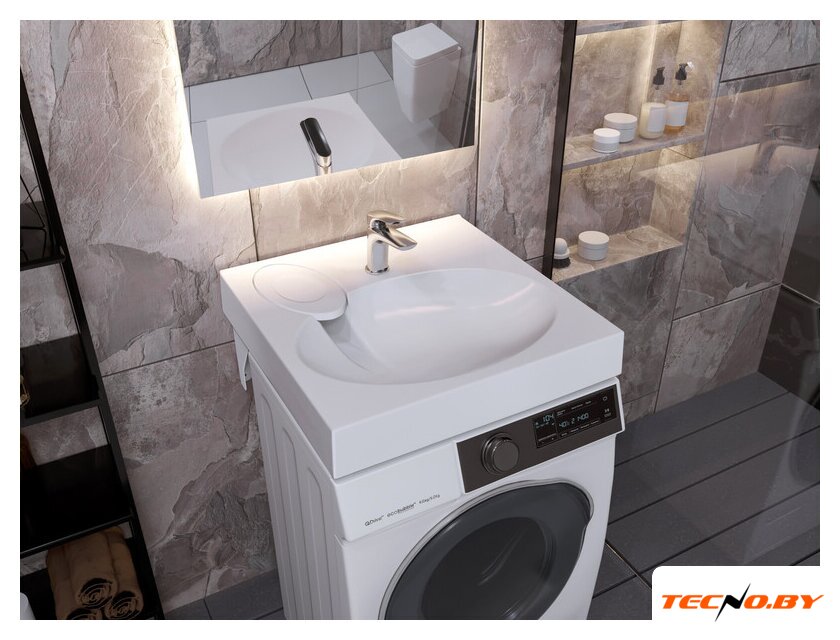 70.1x48.1 см, с одной чашей, накладной, искусственный камень, крепление на мебельный шкаф/на столешницу