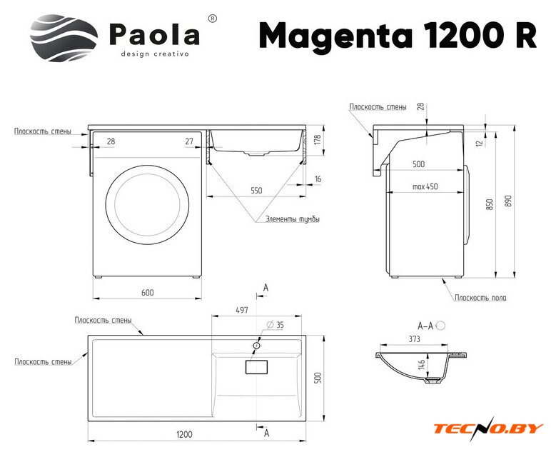 Особенностью умывальника Paola Magenta 1200R является его установка над стиральной машиной, что особенно ценится в условиях ограниченного пространства. Одна чаша и 1 отверстие под смеситель гарантируют простоту и удобство использования. Наличие перелива предотвращает переполнение чаши, обеспечивая дополнительную безопасность.