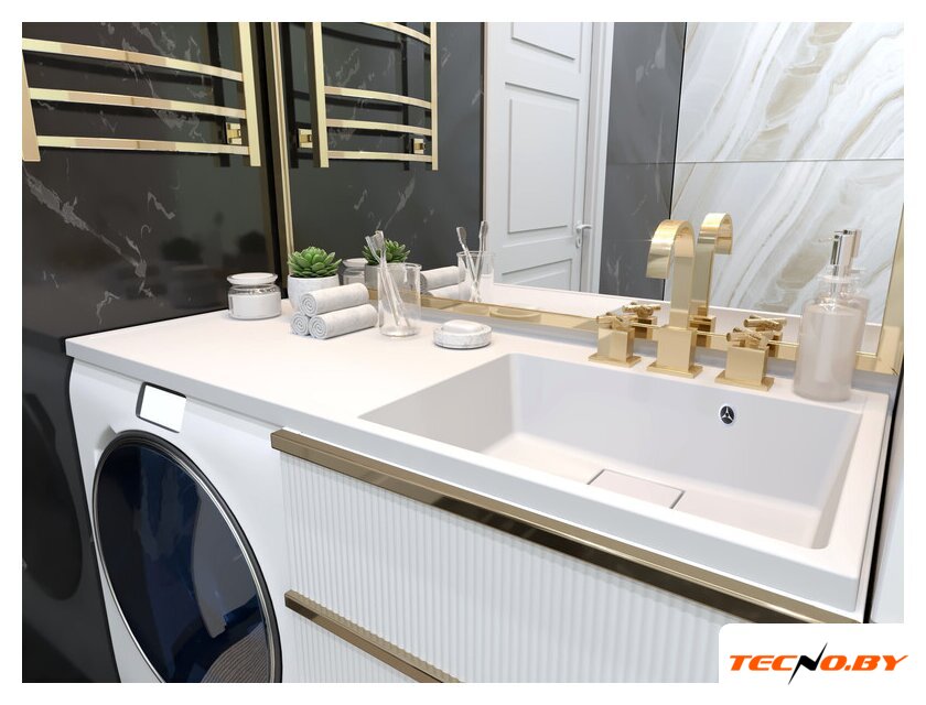 Искусственный мрамор, из которого выполнен данный умывальник, отличается высокой прочностью и стойкостью к воздействию влаги и бытовой химии. Это делает его идеальным выбором для жизнерадостных семей, у которых меньше времени на уход за элементами интерьера, но важна долговечность и надежность.